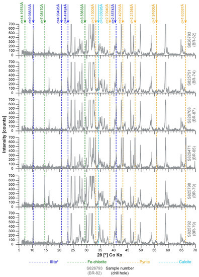 - Środoń, J.; Eberl, D.D. Illite. Rev. Mineral. 1984, 13, 495–544. [Google Scholar] [CrossRef]