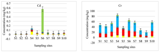 Similarly, the concentrations of Cr in sequentially extracted sediment samples are presented in Figure 3. Moreover, the total concentrations of Cr are compared with pseudo-total concentrations determined after microwave-assisted acid digestion (Figure 4).