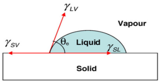 The flotation process of mineral particles occurs at the solid-liquid-gas three-phase interface. The most direct way to characterize the floatability of mineral particles in a reagent solution is to measure the three-phase contact angle on the mineral surface (Figure 11) and a large three-phase contact angle is usually indicative of good floatability of the mineral in the reagent system [22,30]. Thus, the contact angle measurements are carried out to compare the floatability of cassiterite and calcite in different systems.