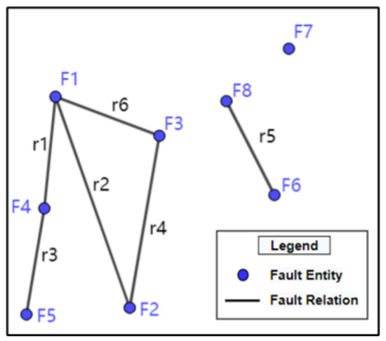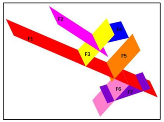 - Process the remaining connected fault entities sequentially. The degree of the fault entity is in the fault-fault contact relationship; if , then is the major fault and is the minor fault; otherwise, it remains unchanged.