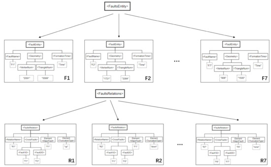 - XML was used to record complex fault models’ information. It can be converted with a graph structure to facilitate the analysis of the contact relationship between faults in a visual environment. Prior geological knowledge can be expressed in XML and directly participate in model construction, simplifying modeling steps and improving modeling efficiency.