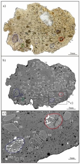 - Joy, K.H.; Nemchin, A.; Grange, M.; Lapen, T.J.; Peslier, A.H.; Ross, D.K.; Zolensky, M.E.; Kring, D.A. Petrography, geochronology and source terrain characteristics of lunar meteorites Dhofar 925, 961 and Sayh al Uhaymir 449. Geochim. Cosmochim. Acta 2014, 144, 299–325. [Google Scholar] [CrossRef]