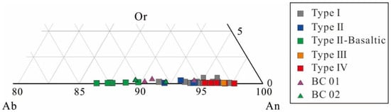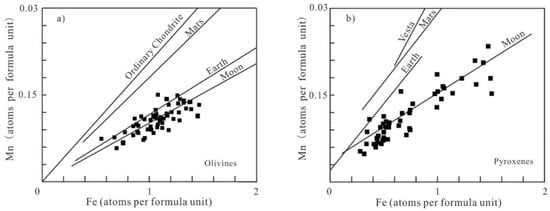 - Papike, J.; Karner, J.; Shearer, C. Determination of planetary basalt parentage: A simple technique using the electron microprobe. Am. Mineral. 2003, 88, 469–472. [Google Scholar] [CrossRef]
