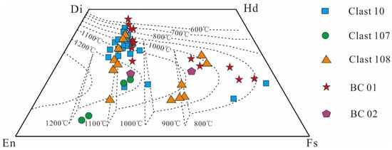 - Lindsley, D.H. Pyroxene thermometry. Am. Mineral. 1983, 68, 477–493. [Google Scholar]