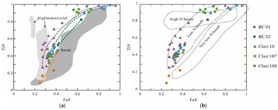 - Xue, Z.; Xiao, L.; Neal, C.R.; Xu, Y. Oldest high-Ti basalt and magnesian crustal materials in feldspathic lunar meteorite Dhofar 1428. Geochim. Cosmochim. Acta 2019, 266, 74–108. [Google Scholar] [CrossRef]