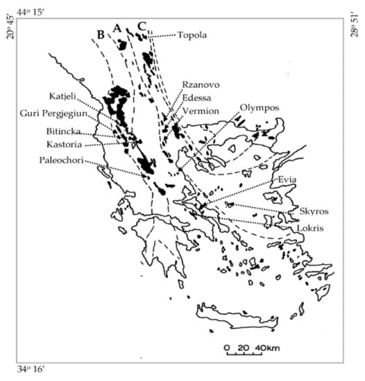 14]. They provide some 2–3% of the World’s total Ni and include deposits in Serbia (Topola), in N. Macedonia, former F.Y.R.O.M. (Rzanovo), Albania (Bitincka, Gouri-Perjuegjiun, and Katjeli) and Greece (Lokris, C. Evia, Kastoria, Vermion, Paleochori, Edessa, Olympos) (