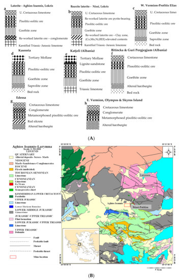 Figure 2) of allochthonous origin because of the association of Fe–Ni ore with the bauxite laterite at the Nissi–Patitira location, and the relatively high contents of critical metals [