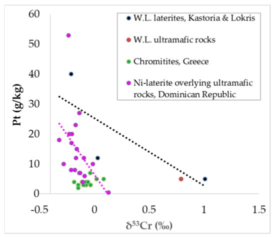 Any relationship between Sc and Pt or Pd is not clear, but there is a positive trend in the laterite samples from W. Vermion (