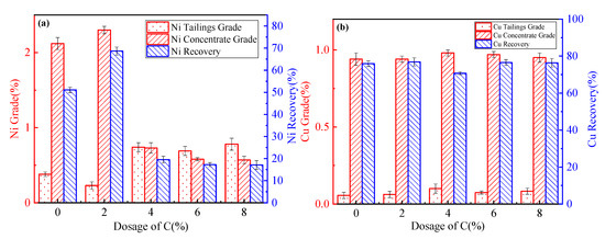 - In comparison with the direct flotation recovery of the raw slag, the grade of tailings of nickel and copper in the top blowing slag can be decreased by 0.41% and 0.088%, while those in the settling slag can be decreased by 0.40% and 0.129% by flotation after modification.