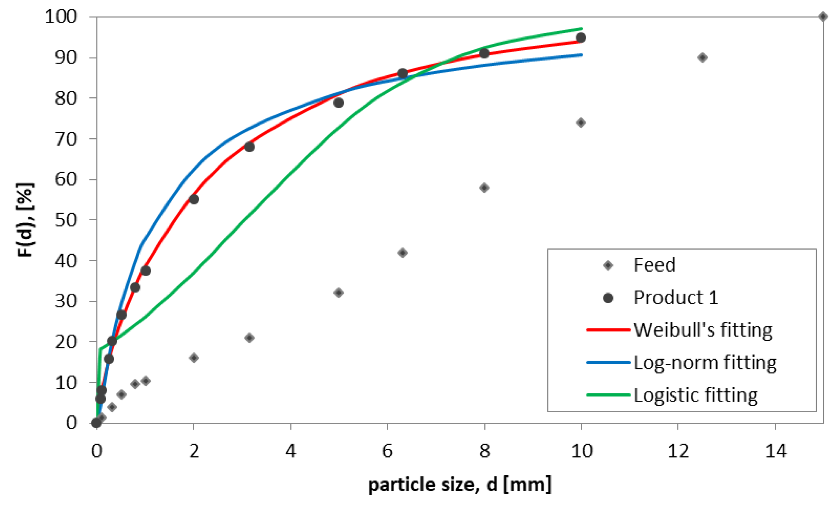 - Nad, A.; Brożek, M. Application of three-parameter distribution to approximate the particle size distribution function of comminution products of dolomitic type of copper ore. Arch. Min. Sci. 2017, 62, 411–422. [Google Scholar] [CrossRef]