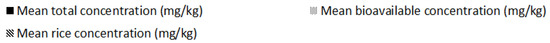 3.2. Correlations between Total and Bioavailable Concentrations in Soil vs. Rice