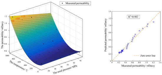 3.3. Mathematical Modeling of the Relationship between Temperature-Stress and Sandstone Permeability