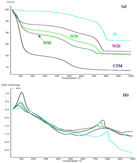 - Mackenzie, R.C.; Bishui, B.M. The Montmorillonite Differential Thermal Curve. ii Effect of Exchangeable Cations on the Dehydroxylation of Normal Montmorillonite. Clay Miner. Bull. 1958, 3, 276–286. [Google Scholar] [CrossRef]