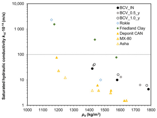 Saturated hydraulic conductivity of BCV compared to data for Friedland clay, Rokle, Deponit CAN, MX-80, and Asha [53].