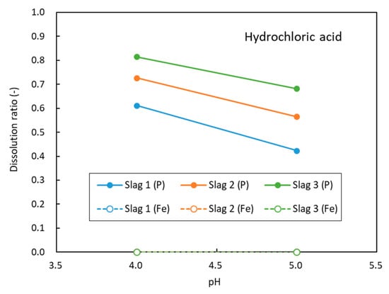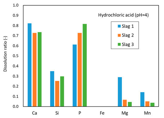 Dissolution ratio of each element from dephosphorization slag in hydrochloric acid solution at pH 4.