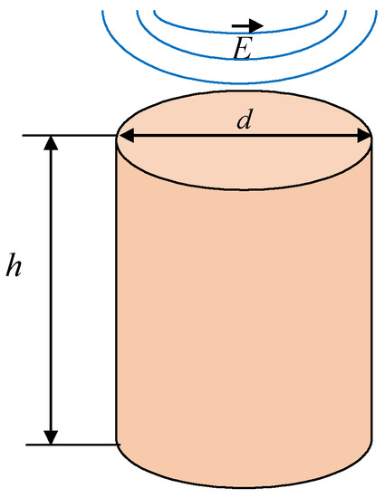 In accordance with the physical model, a sample of oil source rock of cylindrical shape with height h and diameter d is considered. The scheme of the computational domain is shown in Figure 3.