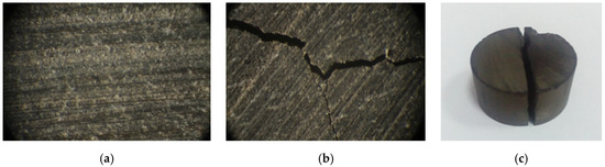Before the experiment on the electromagnetic treatment, the surface of the samples was analyzed by optical microscopy. After the experiment, the surface of the samples was examined again. In this case, one could observe macrocracks using an optical microscope and microcracks using a scanning electron microscope.