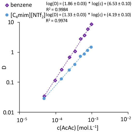 | 0.5 M AcAc in [C4mim][NTf2] | 94.7 ± 0.5% | 91.5 ± 0.4% | 85.8 ± 0.4% | 0.4 ± 0.1% | 0.1 ± 0.1% | 0.1 ± 0.1% |