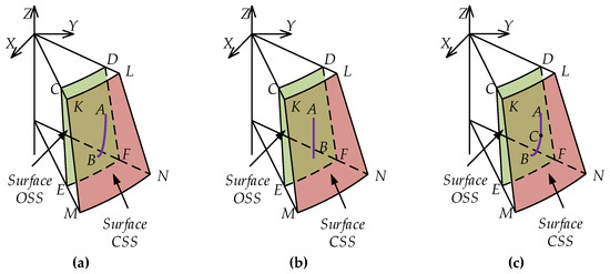 Equation (27) is decomposed along the X, Y, and Z axes of the absolute coordinate system. The balance force system in three directions of the global coordinate system can be expressed as Equations (28)–(30).