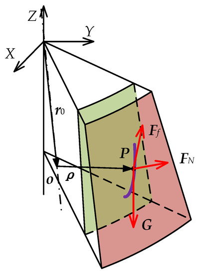 The friction force Ff of the particle P is proportional to the support force FN, and the direction is opposite to the movement direction of particle P relative to the mantle surface, so the friction force Ff of particle P can be expressed by Equation (25).