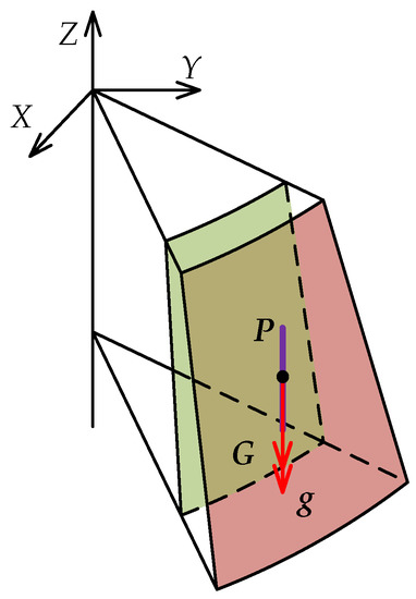 The particle P is affected by gravity G, and the size and direction of gravity G do not change, which can be expressed by Equation (26).