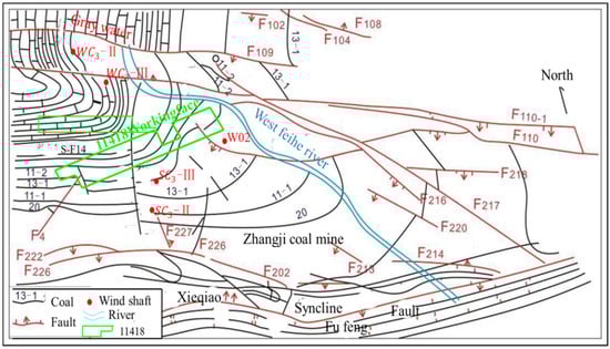 - Wang, F.; Ma, Q.; Zhang, C.; Fen, G. Overlying strata movement and stress evolution laws triggered by fault structures in backfilling longwall face with deep depth. Geomat. Nat. Hazards Risk 2020, 11, 949–966. [Google Scholar] [CrossRef]