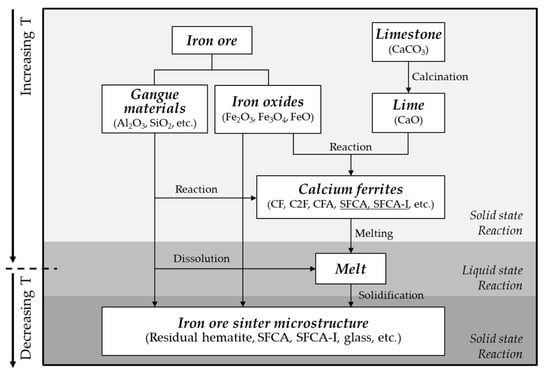 Schematic of the formation mechanism of the microstructure of iron ore sinter. Modified from Jeon et al. [13].