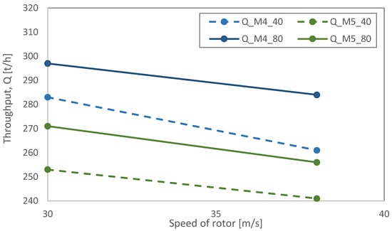 Results of throughput for various speeds of the rotor for materials M4 and M5.
