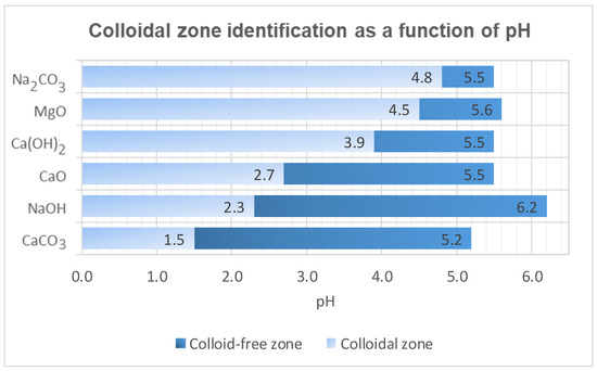 Figure 1 shows the behavior of all the test reagents regarding the transition pH between the colloidal and non-colloidal zone.