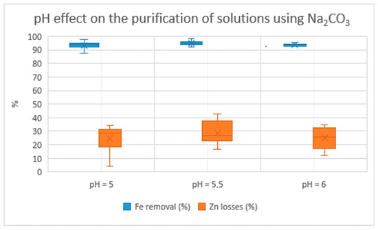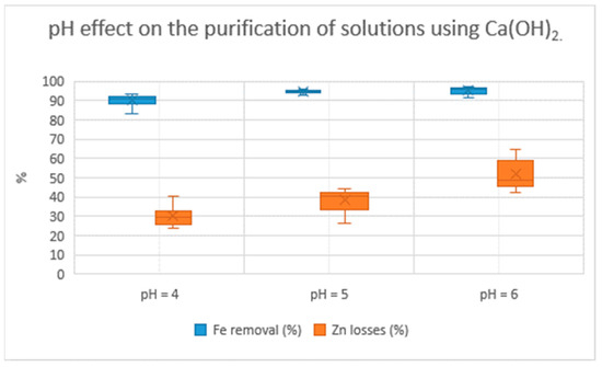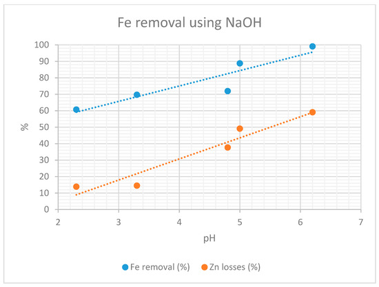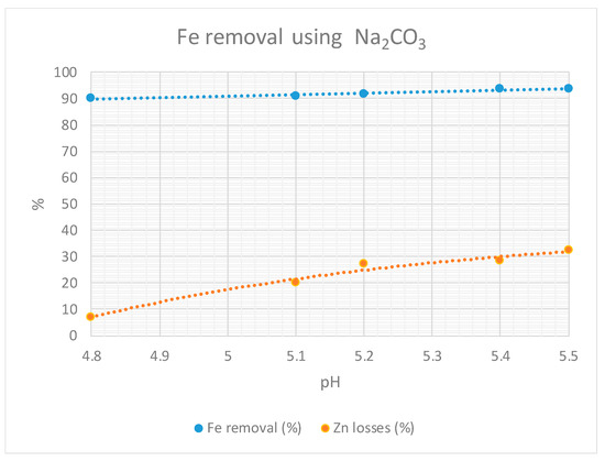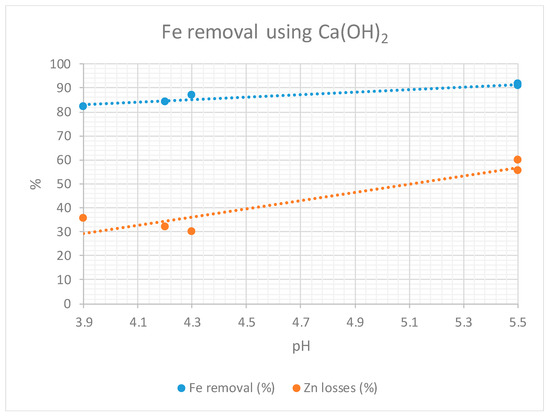 Figure 5 shows the results obtained for removing iron and zinc losses in the pH range of 2.7 to 5.5.