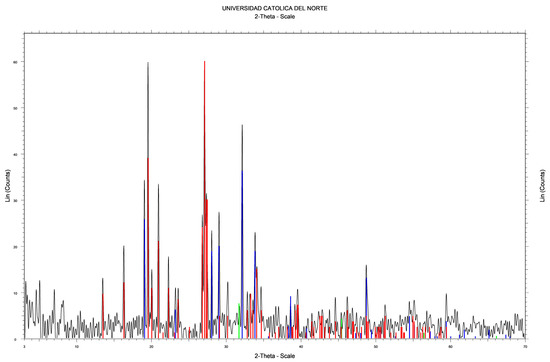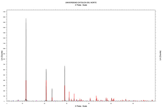 The solids were characterized using Qemscan (Quantitative Evaluation of Minerals by Scanning Electron Microscopy) and the X-ray diffraction method (XRD). The Qemscan (Scientific Equipment Unit, Universidad Católica del Norte, Antofagasta, Chile) is a scanning electron microscope that has been modified both in hardware and software to perform automated identification and quantification of a range of basic definitions that can be associated with solid inorganic phases such as minerals, alloys, and slags, among others. The XRD was performed using a Bruker® Advanced 8 X-ray diffractometer (Scientific Equipment Unit, Universidad Católica del Norte, Antofagasta, Chile), which enables material characterization by detecting the crystalline structure. A diffractogram is produced, which is compared to the database the DIFFRAC.EVA V6 program is used to identify the crystalline phases and enables qualitative evaluation. The Rietveld refinement is used in the DIFFRAC.TOPAS software (Scientific Equipment Unit, Universidad Católica del Norte) to perform the quantification. HORIBA’s Digital pH-Meter, Model LAQUA-PH1100, LAQUA, Kyoto, Japan, was used to take the pH readings. pH 4.0 and pH 7.0 buffer solutions were used to calibrate the device. Potential measurements are a quick and accurate way to estimate the oxidizing or reducing capacity of the medium in which the reaction occurs. The redox potential was determined using the same pH measuring apparatus but with an Ag/AgCl electrode and 430–470 [mV] redox solutions instead of the pH electrode (Check standard). Zn and total Fe in solution were determined using Atomic Absorption Spectroscopy, Teledyne Princeton Instruments, California, USA. Zn has a detection limit of 0.05 mg/L, while Fe has a detection limit of 0.13 mg/L.