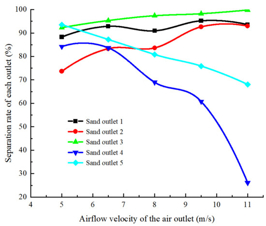 Variation curve of sand separation rate under the change of air outlet velocity.