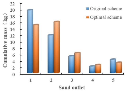 Comparison of the sand cumulative mass between the original and optimal scheme.
