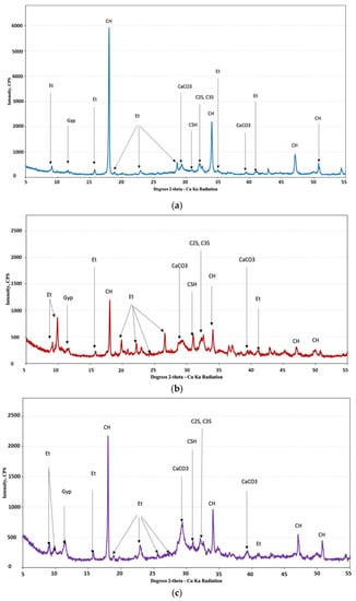 - Zhou, Q.; Glasser, F.P. Thermal stability and decomposition mechanisms of ettringite at <120 °C. Cem. Concr. Res. 2001, 31, 1333–1339. [Google Scholar] [CrossRef]