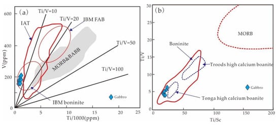 57. Shervais, J.W. Ti-V Plots and the petrogenesis of Modern and ophiolite lavas. Earth Planet. Sci. Lett. 1982, 59, 101–118. [Google Scholar] [CrossRef]