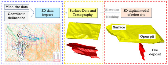 3D software to perform grouping simulations on the software. Previous research still assumes modeling homogenization and idealization; moreover, simulation research considering real topography and ore deposit occurrence forms of mining areas is not sufficiently deep.