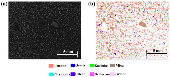 Minerals intercalation relationship images from MLA analysis: (a) original image; (b) color image.