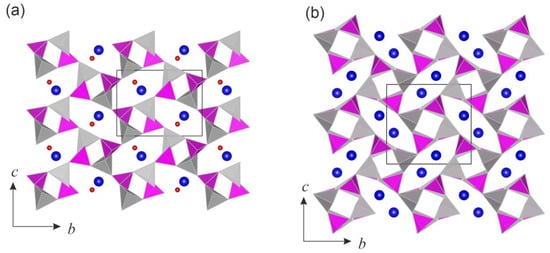- Keller, P.; Hess, H. Die Kristallstrukturen von O‘Danielit, Na(Zn,Mg)3H2(AsO4)3, und Johillerite, Na(Mg,Zn)3Cu(AsO4)3. Neues Jahrb. Mineral. Monatsh. 1988, 9, 395–404. [Google Scholar]