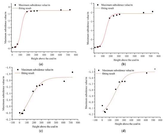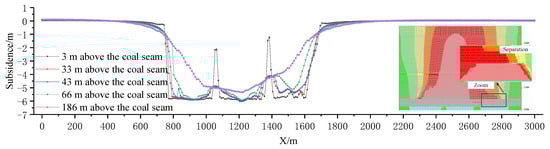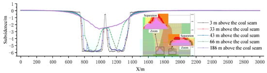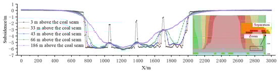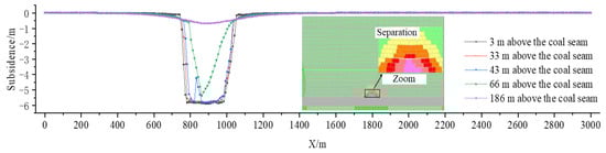 | Height above the Coal/m | Subsidence Value of the Overlying Strata at Different Buried Depths/mm | |||