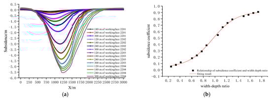 | Mining Process | Mining Width/m | Mining Depth/m | Width-Depth Ratio | Subsidence/mm | q |