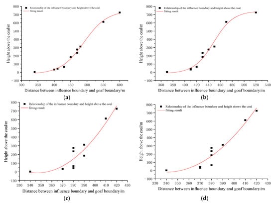 | Height above the Coal/m | Distance of the Subsidence Influence Boundary to Goaf Boundary/m | |||