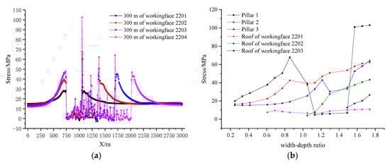 | Mining Order | Width Depth Ratio | Immediate Roof of Working Face 2201 | Pillar 1 | Immediate Roof of Working Face 2202 | Pillar 2 | Immediate Roof of Working Face 2203 | Pillar 3 |