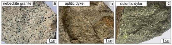 - Eby, G. The A-type granitoids: A review of their occurrence and chemical characteristics and speculations on their petrogenesis. Lithos 1990, 26, 115–134. [Google Scholar] [CrossRef]