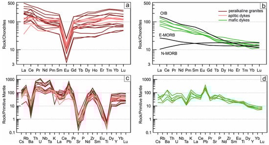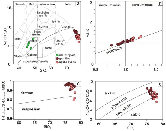 - Litvinovsky, B.A.; Jahn, B.M.; Zanvilevich, A.N.; Saunders, A.; Poulain, S.; Kuzmin, D.V.; Reichow, M.K.; Titov, A.V. Petrogenesis of syenite–granite suites from the Bryansky Complex (Transbaikalia, Russia): Implications for the origin of A-type granitoid magmas. Chem. Geol. 2002, 189, 105–133. [Google Scholar] [CrossRef]