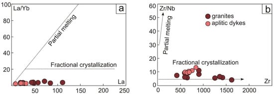 - Eby, G.N. Chemical subdivision of the A-type granitoids:Petrogenetic and tectonic implications. Geology 1992, 20, 641–644. [Google Scholar] [CrossRef]
