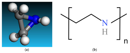Figure 2. Structure of (a) ethyleneimine monomer and (b) linear polyethyleneimine.