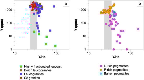 Additional chemical data of apatite associated with other barren pegmatites from the region (Figure 1), including Fregeneda–Almendra, Tres Arroyos [90,91], Belvís de Monroy [86], Barroso–Alvão [92] and Navasfrías [33,93], were compiled and included in this study for comparison.