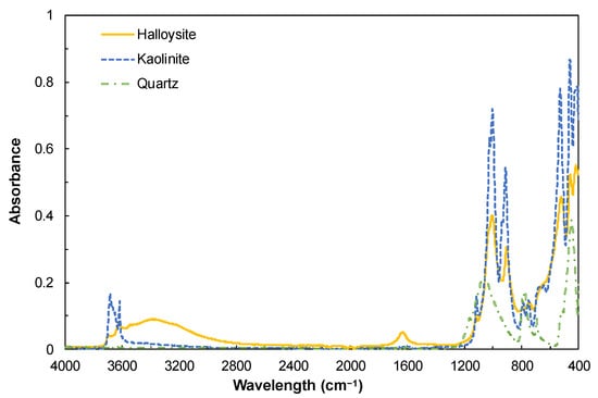 - Cheng, H.; Frost, R.L.; Yang, J.; Liu, Q.; He, J. Infrared and infrared emission spectroscopic study of typical Chinese kaolinite and halloysite. Spectrochim. Acta A Mol. Biomol. Spectrosc. 2010, 77, 1014–1020. [Google Scholar] [CrossRef] [PubMed]