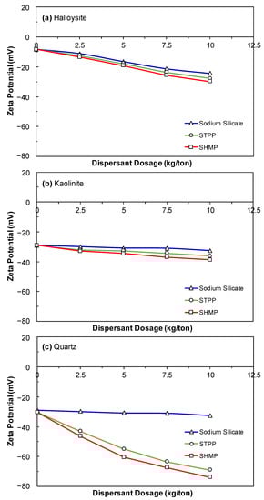 - Ersoy, B.; Evcin, A.; Uygunoglu, T.; Akdemir, Z.B.; Brostow, W.; Joshua, W. Zeta Potential–viscosity relationship in kaolinite slurry in the presence of dispersants. Arab. J. Sci. Eng. 2014, 39, 5451–5457. [Google Scholar] [CrossRef]