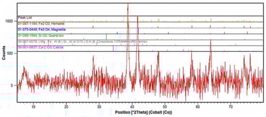The sample used in the present study was taken from the feed stream of the mechanical flotation cells in an iron ore concentrate plant in Iran. In this plant, the iron ore after comminution, gravity and magnetic separation, is fed to the flotation cells. The feed flotation has high sulfur (pyrite) content. In general, pyrite is considered as a gangue mineral creating problems during the steelmaking processes []. Sulfur causes brittleness and frangibility of steel at high temperatures, reduces weldability, increases corrosion, air pollution during the pellet-firing process, increases limestone consumption and slag production in the steelmaking procedure []. Pyrite and pyrrhotite are paramagnetic minerals and are attracted by the magnetic field in the vicinity of iron ores (magnetite and hematite). Therefore, they are not completely recovered by magnetic separators []. In this plant, the concentrate from the magnetic separation generally presents a sulfur content of 0.4 to 0.6%, which value surpasses the allowable limit for steel production (0.1%). The reverse flotation conducted at the end of the processing circuit enables a reduction of the sulfur content in the magnetic separation concentrate.